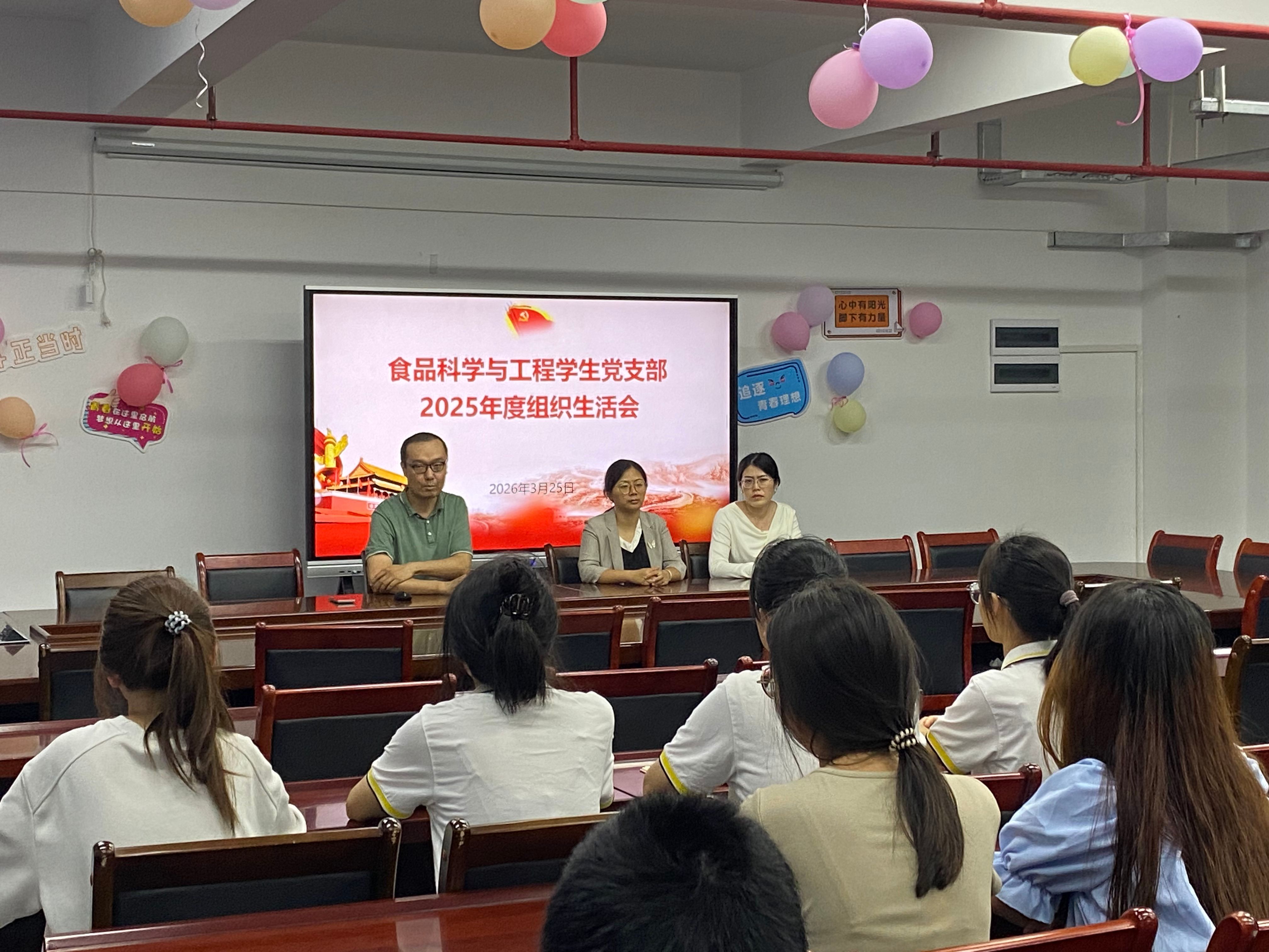 为深入学习贯彻习近平新时代中国特色社会主义思想和党的二十届四中全会精神,严格落实党内政治生活要求,强化基层党支部建设,2026年3月中下旬,食品与制药工程学院各党支部分别召开组织生活会暨民主评议党员会议。会议由各党支部书记主持,学院党委领导班子成员以普通党员身份参加所在党支部的组织生活会。