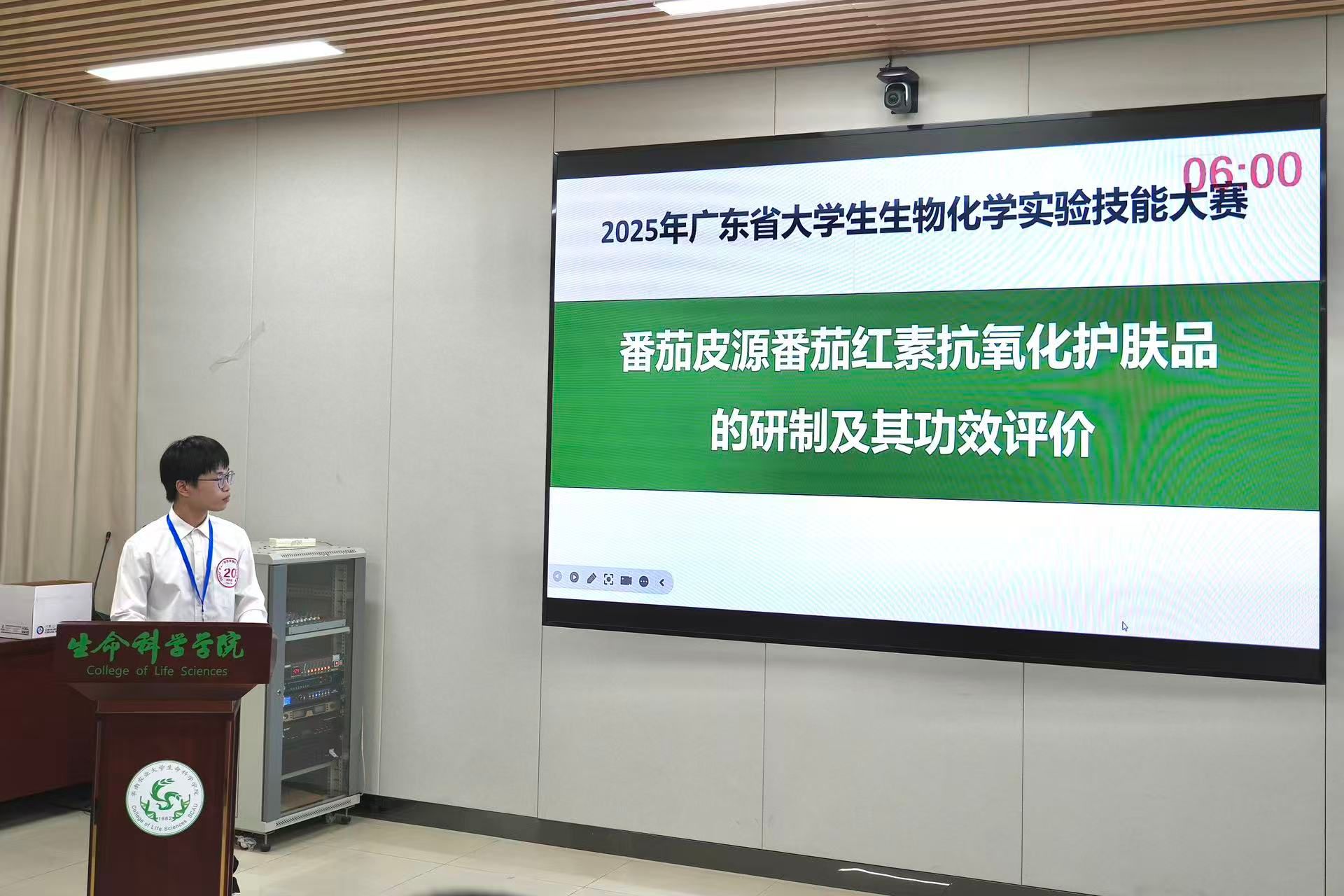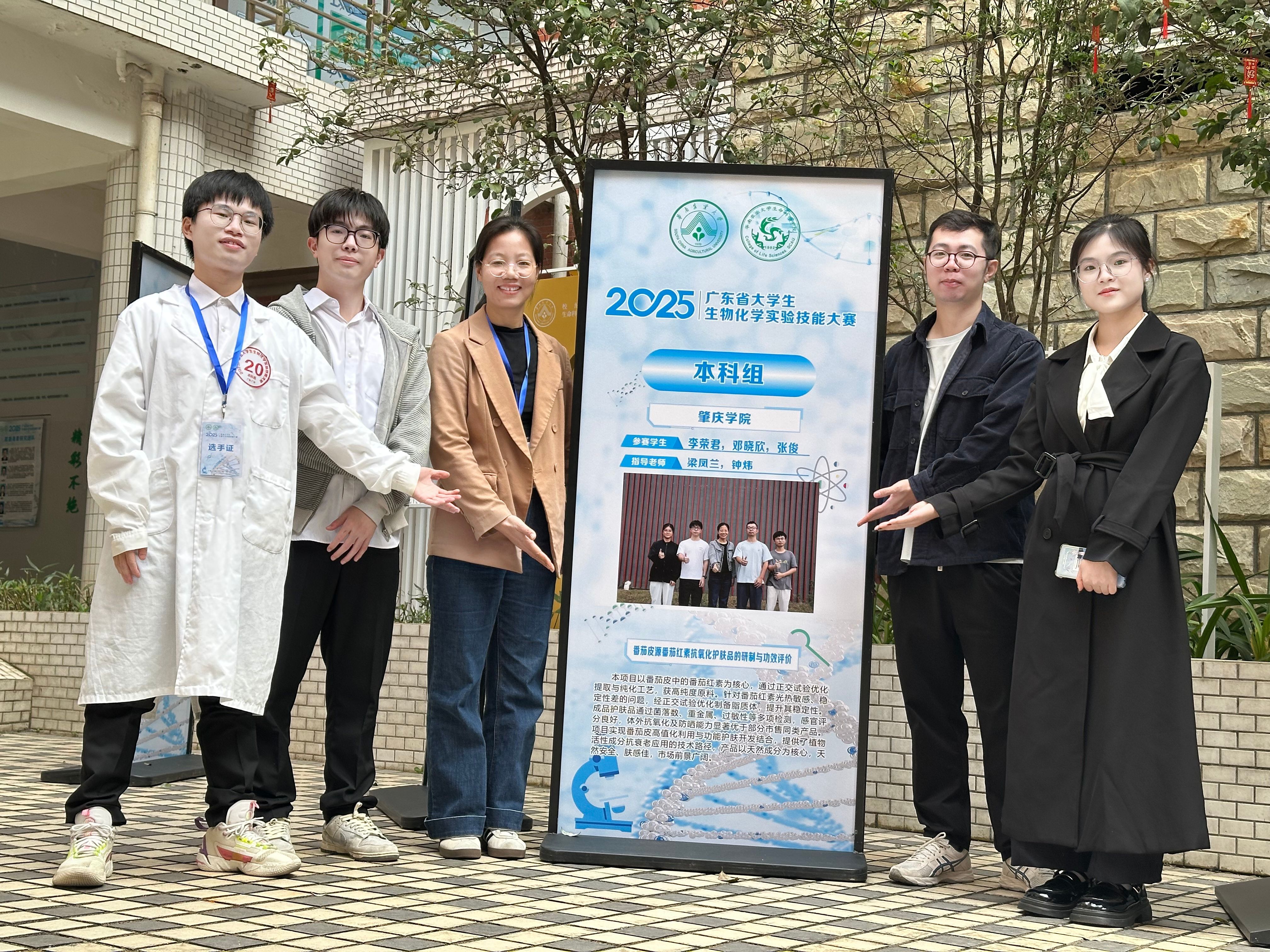 在生命科学技术学院梁凤兰老师和食品与制药工程学院钟炜老师的共同指导下,食品与制药工程学院李荣君、邓晓欣、张俊三位同学凭借项目《番茄皮源番茄红素抗氧化护肤品的研制与功效评价》,于第二十四届广东省大学生生物化学实验技能大赛中脱颖而出,成功晋级决赛,最终荣获二等奖。