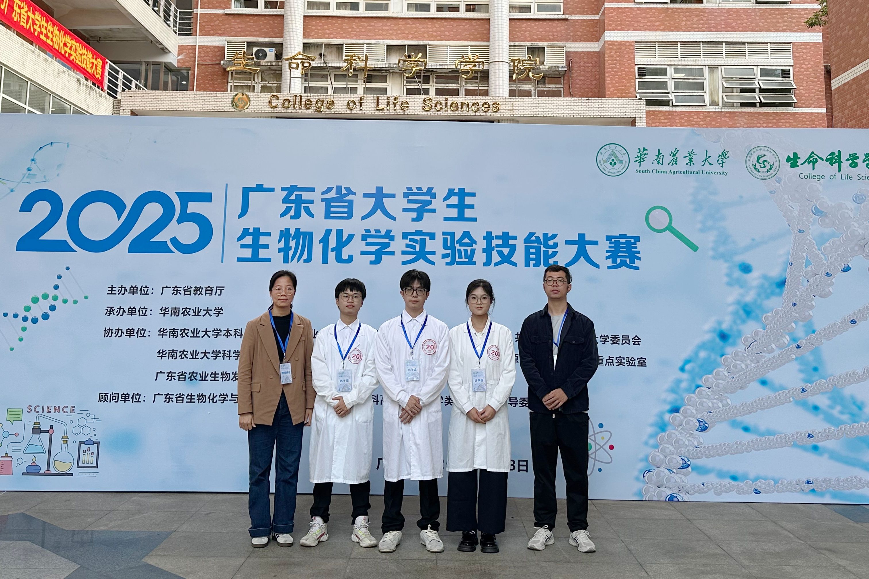 近日,第二十四届广东省大学生生物化学实验技能大赛在华南农业大学圆满落幕。本届比赛由广东省教育厅主办,华南农业大学承办,是省级大学生学科竞赛项目。全省高校约700支队伍参赛,包括中山大学、华南理工大学等高层次院校队伍。经过初赛选拔,共45支队伍、近140名学生进入现场决赛。经专业评委评议,最终共有91支队伍获奖,其中现场决赛角逐产生了一、二等奖。