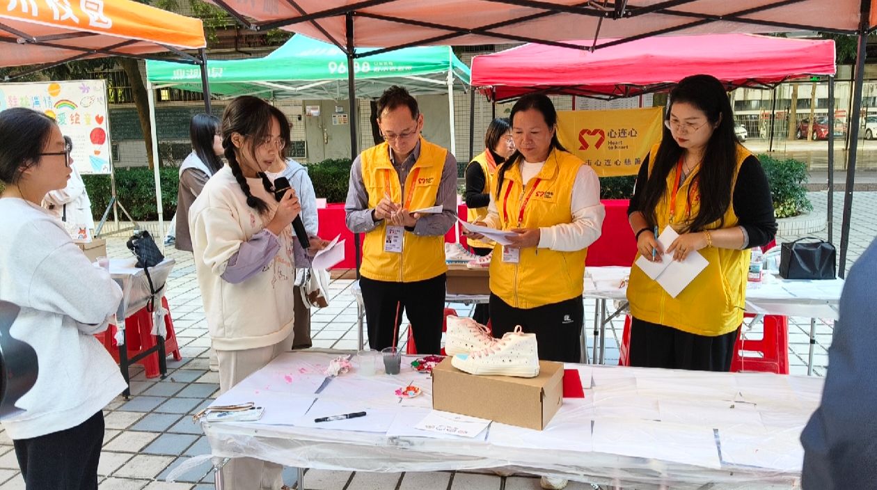 11月23日下午,肇庆学院第十二届“绘履暖冬”手绘鞋制作大赛在理工楼一楼空地成功举办。本次大赛由共青团肇庆学院食品与制药工程学院委员会与共青团肇庆学院环境与化学工程学院委员会共同承办,特邀肇庆市心连心慈善会副会长邹秀英、会员李婷、会员程劲潮,环境与化学工程学院团委书记师伟展、学生兼职团委副书记肖伟乐、食品与制药工程学院辅导员林卓欣、学生兼职团委副书记叶子莹担任嘉宾。