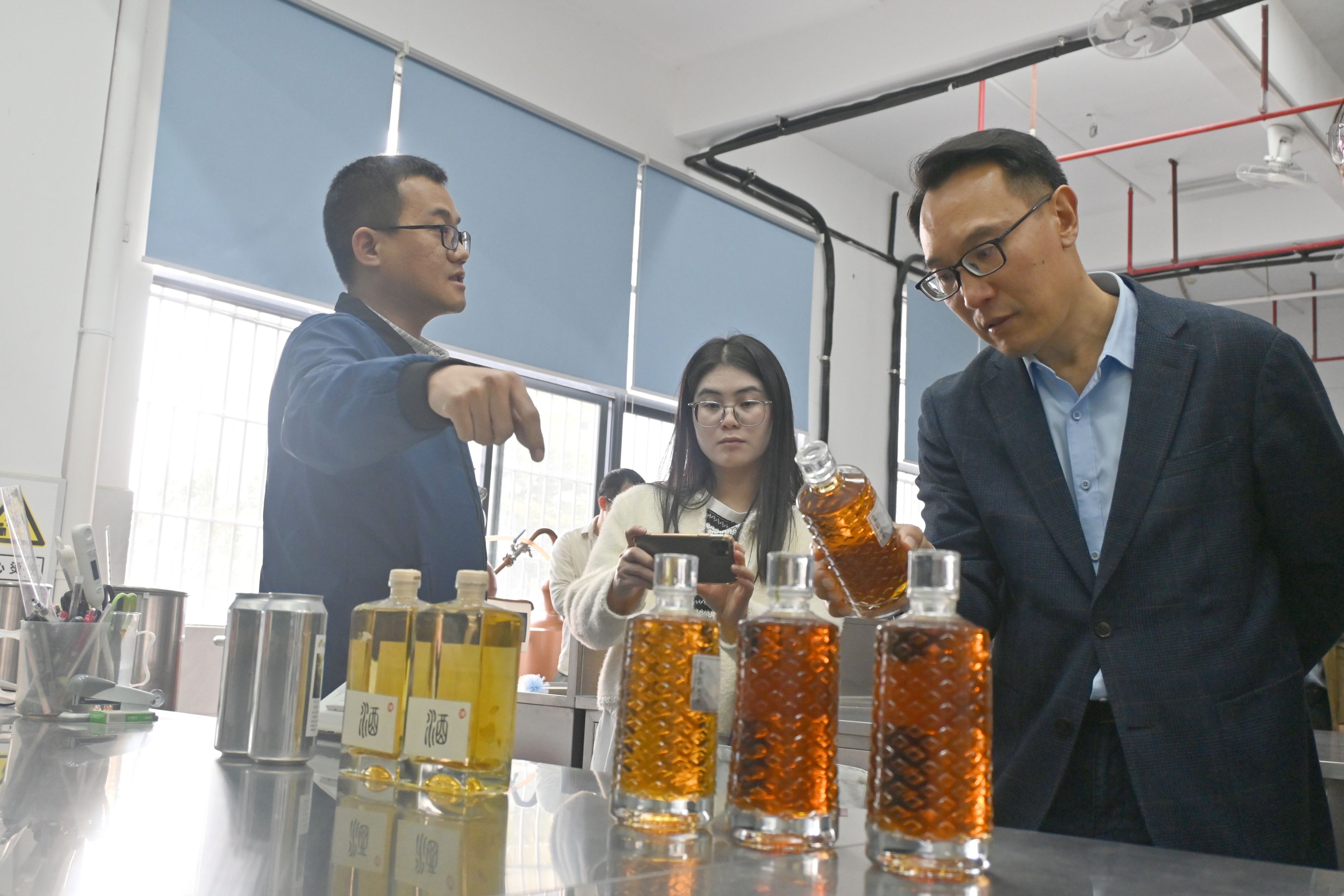 交流伊始,林晓忠书记、刘永副院长陪同王标诗院长一行参观专业发展成果展板,陈子健博士、黄晓辰博士分别介绍了食品质量与安全、营养专业的建设历程,重点展示各专业对接粤港澳大湾区产业需求的实践案例。随后,双方代表走进专业实验室,实地察看实验教学设施与科研平台布局,就仪器配置、实践教学开展等细节交流经验。