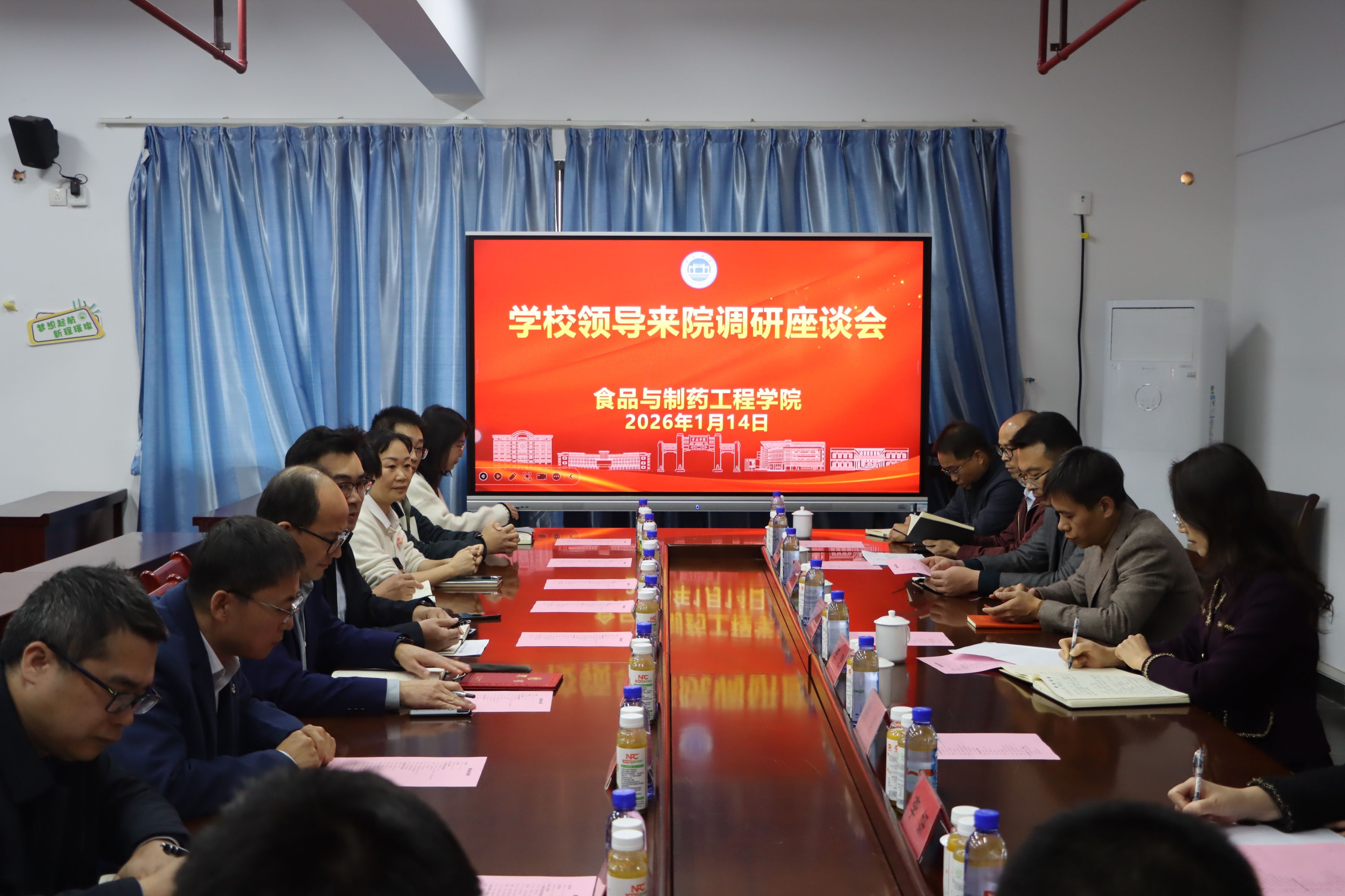 1月14日下午,校长李琴率队前往食品与制药工程学院开展调研并座谈,实地了解学院发展现状。学校党政办公室、人力资源部、教务部、科技部、资产设备管理部、研究生院、教学质量检测与评估中心等职能部门负责人陪同调研。