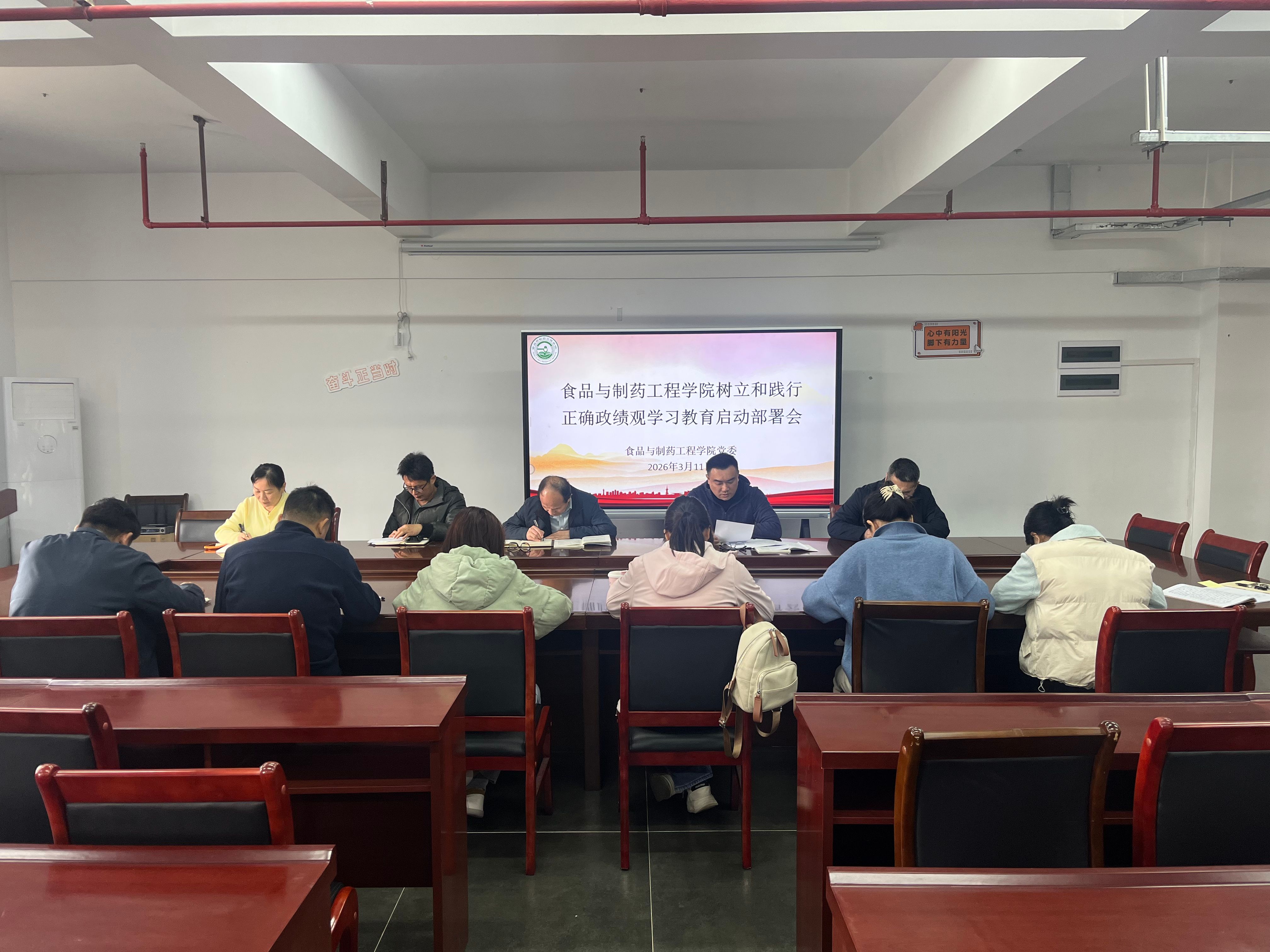 3月11日,食品与制药工程学院党委在实训中心301会议室召开树立和践行正确政绩观学习教育动员部署会。学院党委领导班子成员、各党支部书记参加会议,会议由学院党委书记林晓忠主持。