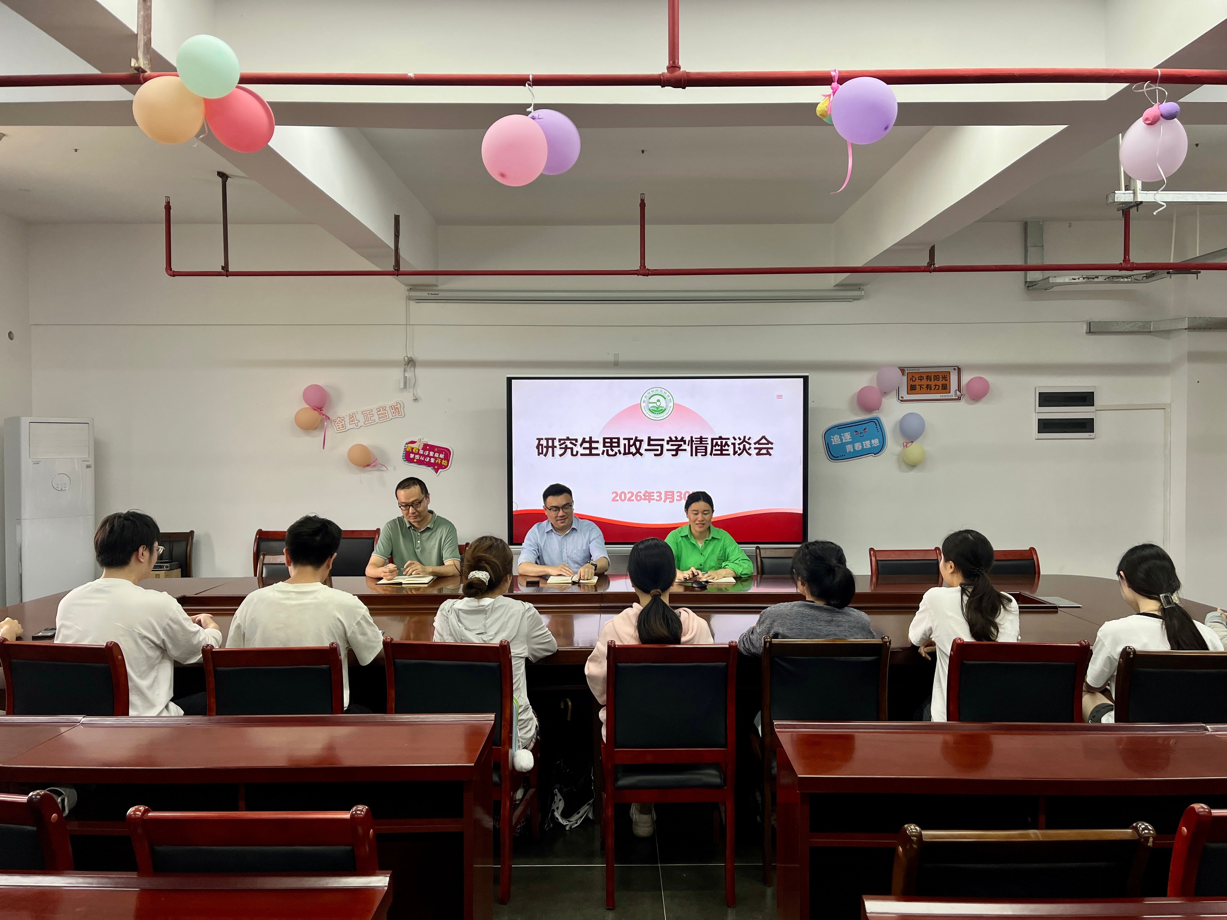 会议首先传达了学校近期研究生思政教育工作会议的相关精神,重点强调了实验安全规范、心理健康关注、日常请假报备等管理要求,并就研究生入党程序与培养工作进行了交流。随后,与会师生围绕科研进展、专业实习安排、社会实践机会以及未来职业规划等研究生普遍关心的问题,展开了深入而坦诚的讨论。