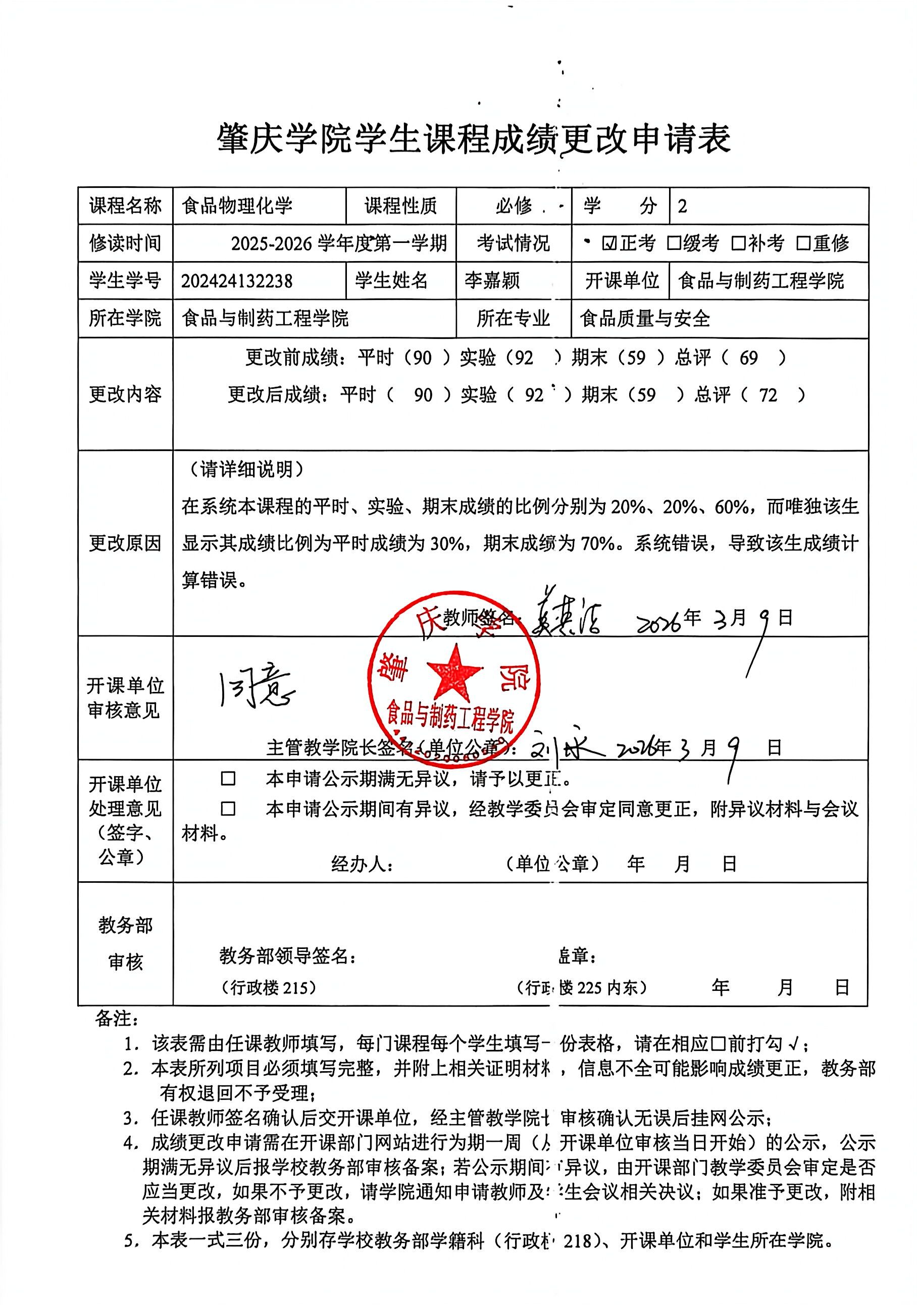 肇庆学院学生课程成绩更改公示